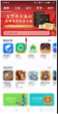 2、進(jìn)入到應(yīng)用市場(chǎng)后,點(diǎn)擊搜索框。