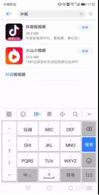 3、在搜索框中輸入“抖音”,然后在搜索結(jié)果中點(diǎn)擊“安裝”。