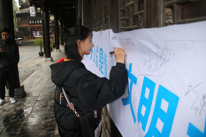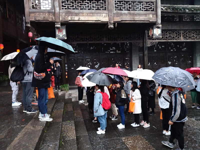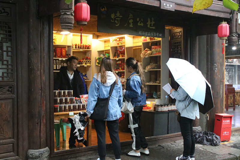 深秋的濯水細(xì)雨蒙蒙,但是仍然阻擋不了同學(xué)們探尋濯水古鎮(zhèn)的熱情。到達(dá)濯水古鎮(zhèn)后,同學(xué)們幾人分成一小組,以體味旅游,感知行業(yè)為實習(xí)任務(wù)主題展開活動。
