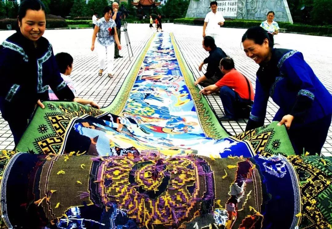 在古鎮舉辦的文化活動中,經常會有織錦技藝傳承人來此做演示。經緯線在古老的織布機上逐漸變成表現山水、人物、花鳥樹木、飛禽走獸等色彩鮮明、圖案優美、經久耐用的織錦,仿若一場在黑白琴鍵上的演奏。