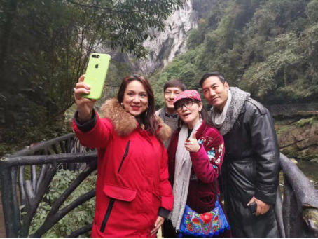 展映的同時嘉賓們到了濯水景區步行了世界第一風雨廊橋。近距離欣賞土家文化瑰寶。